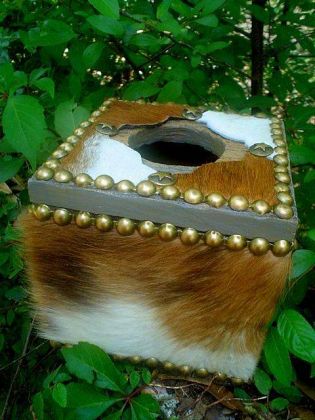 Cowhide Covered Barnwood Horseshoe & Star Tissue Box Cover $137.50 Read more about Cowhide Covered Barnwood Horseshoe & Star Tissue Box Cover